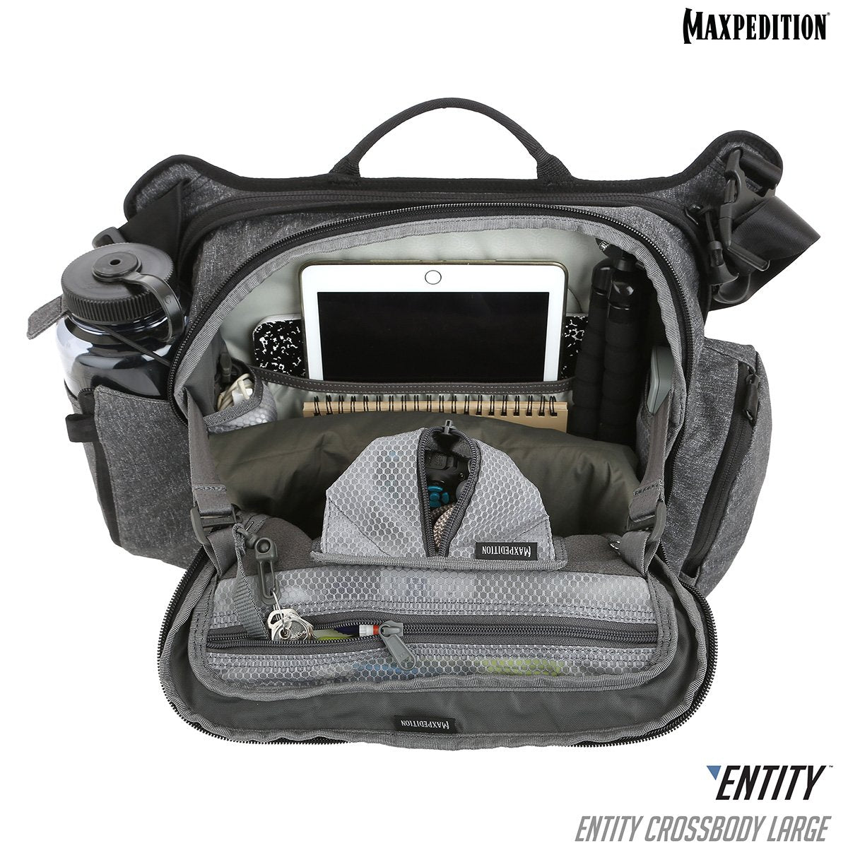Since 2003 with the introduction of our iconic Versipack™, Maxpedition has specialized in crossbody carry, and the Entity Crossbody bags are no exception. Available in 2 sizes, this is the larger 14L / 850 cu. in. version with our signature expandable bottle holder and quick access CCW compartment. The Entity line focuses on discreet concealed carry for covert operators and prepared citizens who choose to be unnoticed. A sleek, modern exterior devoid of characteristics typically associated with the “tactical look” masks an interior optimized for organization and situational readiness.