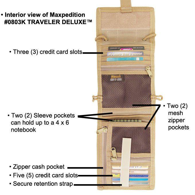 - Clear passport window flips open to reveal 13 slip / zipper pockets and credit card organizer