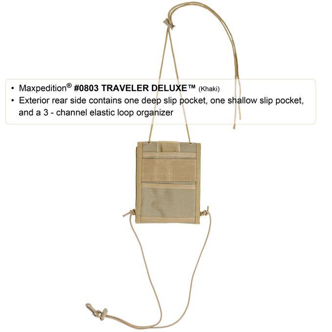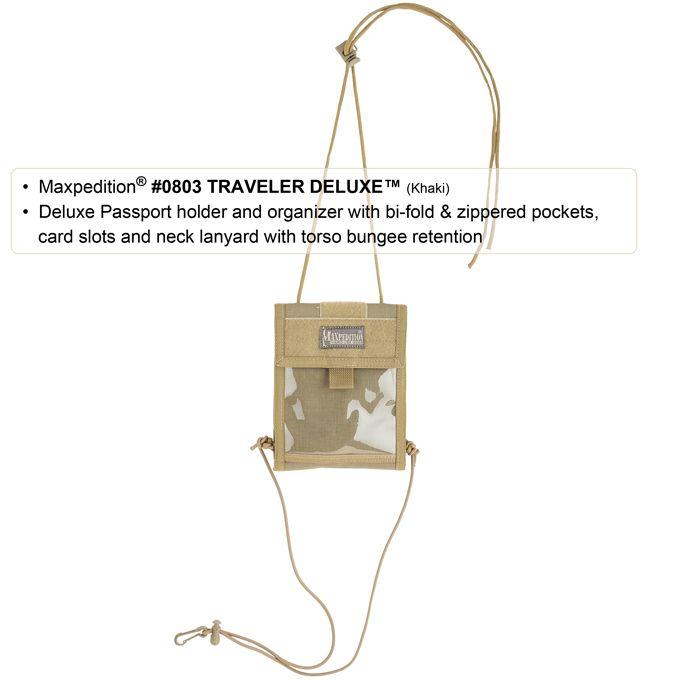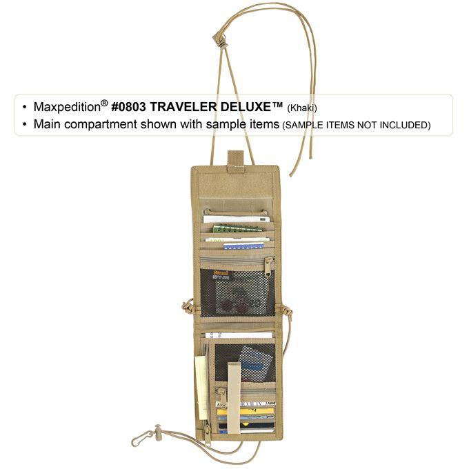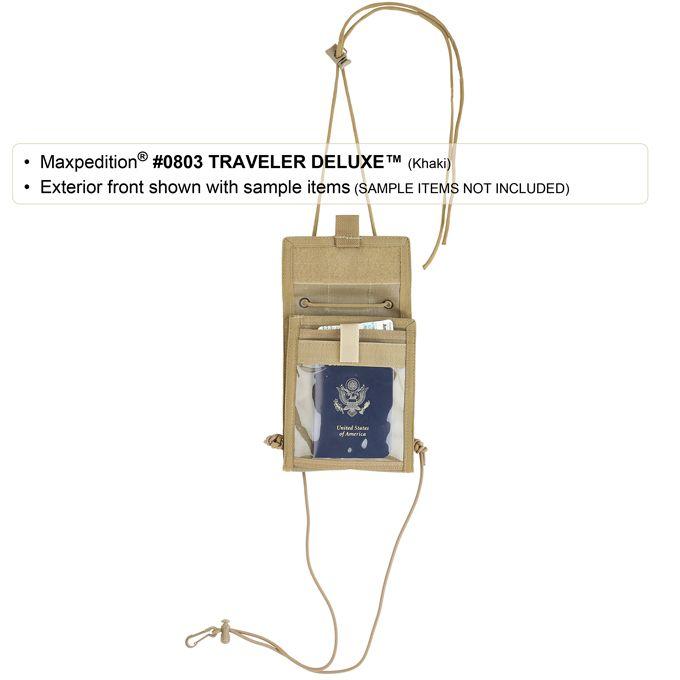 The #0803 Traveler Deluxe has everything offered by the #0801 Traveler but, in addition, it also flips open to reveal five (5) more slip pockets, two (2) zippered pockets, and credit card organizer.